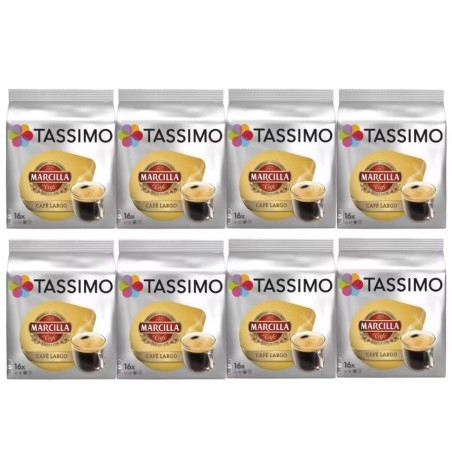 Capsulas TASSIMO MARCILLA Largo - 8 paquetes de 16 capsulas